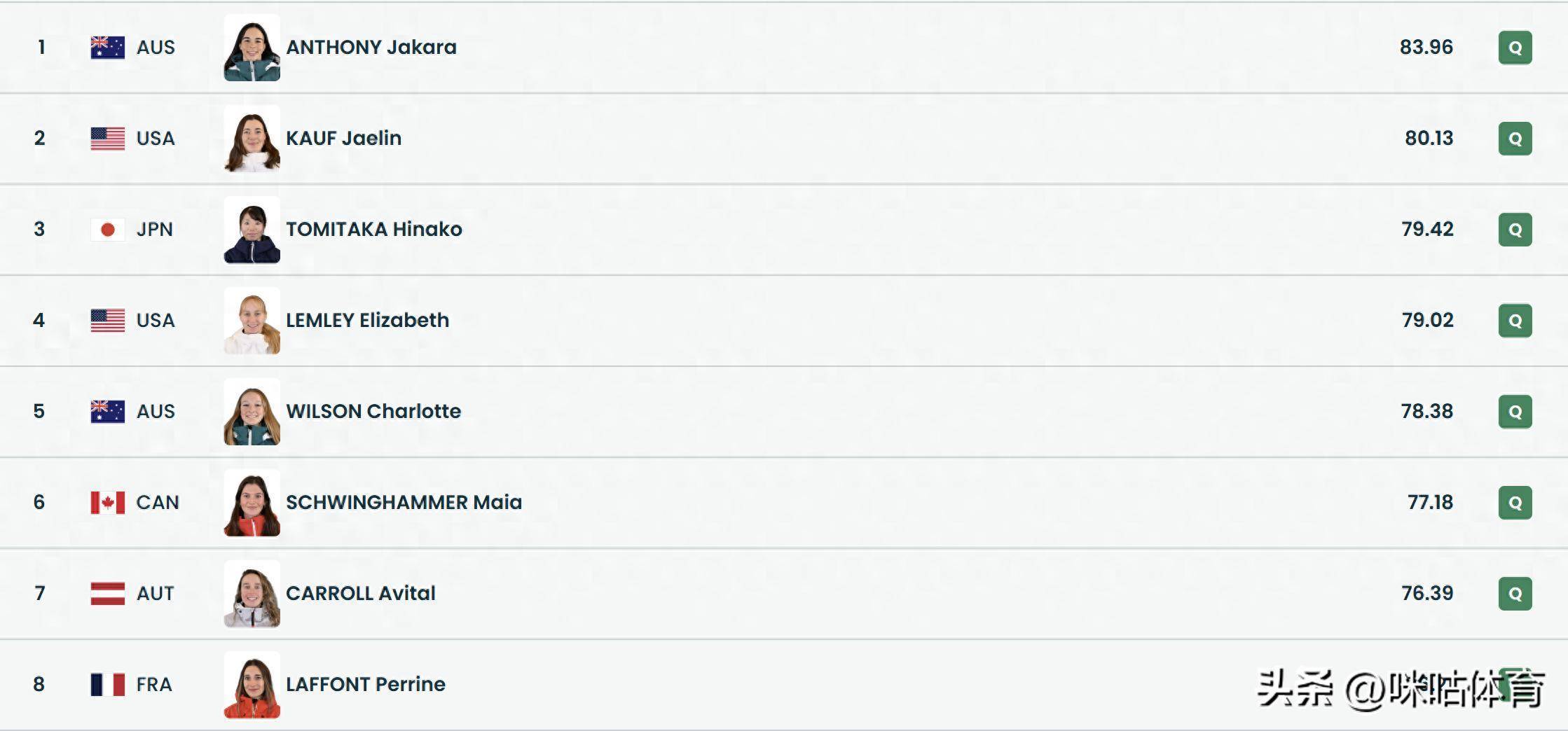 北京时间2月11日晚,米兰冬奥会自由式滑雪女子雪上技巧决赛上演。首轮比赛,澳大利亚选手安东尼83.96分排在首位,美国选手考夫80.13分位列第二,日本选手富高雏子以79.42分排在第3位,另一位美国选手,被誉为“天才少女”的06年小将莱姆利79.02分排名第4。本轮比赛共8名选手晋级第二轮配资公司有哪些,展开奖牌争夺。