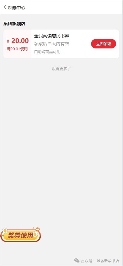 纸质优惠券仅限潍坊各县市区所有新华书店门店线下活动现场使用核销,订单实交款金额大于20元可核销使用。