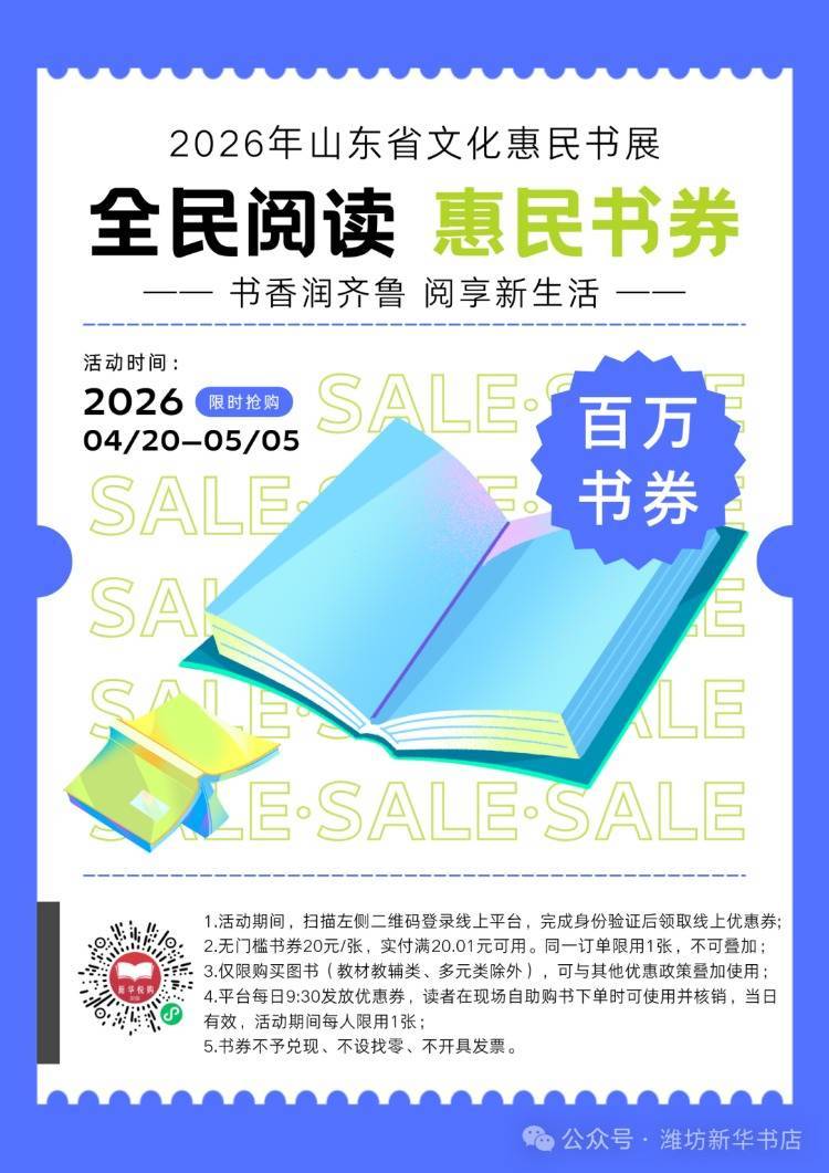 潍坊各县市区所有新华书店门店将开启图书78折销售,读者可享受“打折+惠民书券”双重优惠,切实落实文化惠民政策。