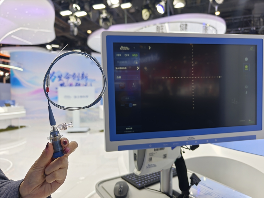 波士顿科学首次在展台设立AI展区,其中的“AVVIGO+血管内超声系统”,是冠心病治疗核心术式经皮冠状动脉介入治疗(PCI)中首个落地的AI应用系统,也是美国FDA批准的首款具备AI功能的血管内超声(IVUS)系统。该系统融合了AI技术,能辅助医生精准评估血管病变,手术时间减少62%,缩短基层医生学习曲线,提升导管室运转效率,给广大冠心病患者带来福音。更令人欣喜的是,其配套使用的导管将于明年在临港工厂实现本土化量产。