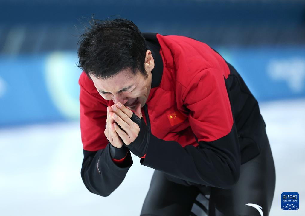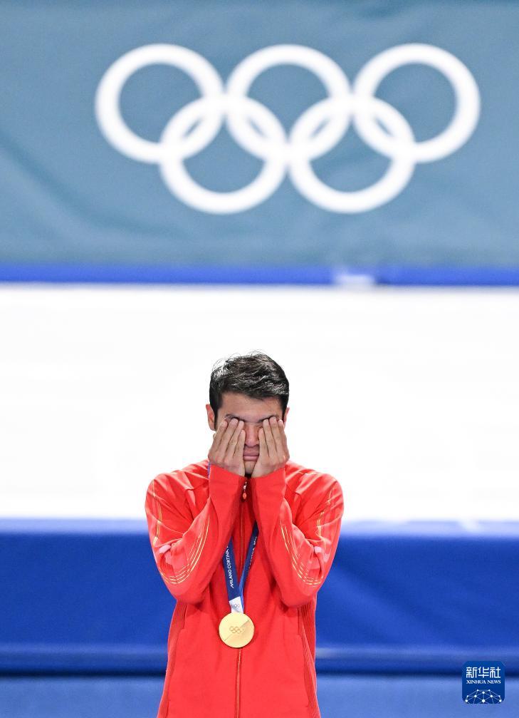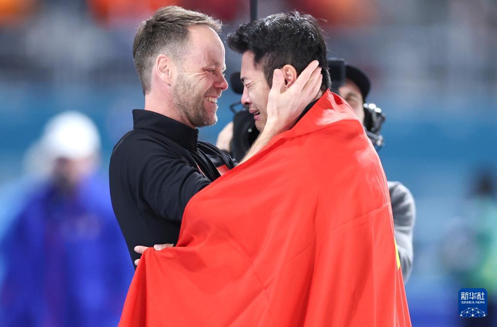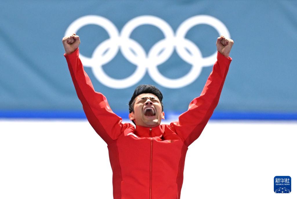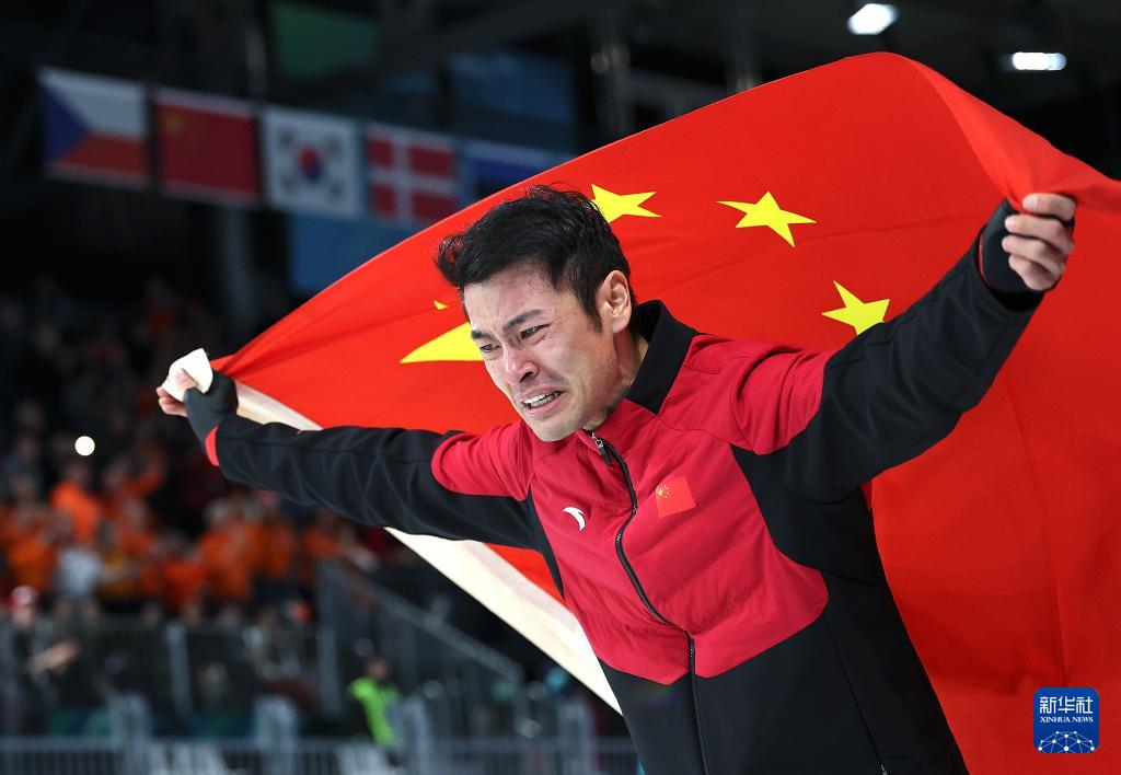 2月19日,宁忠岩在赛后身披国旗庆祝。
