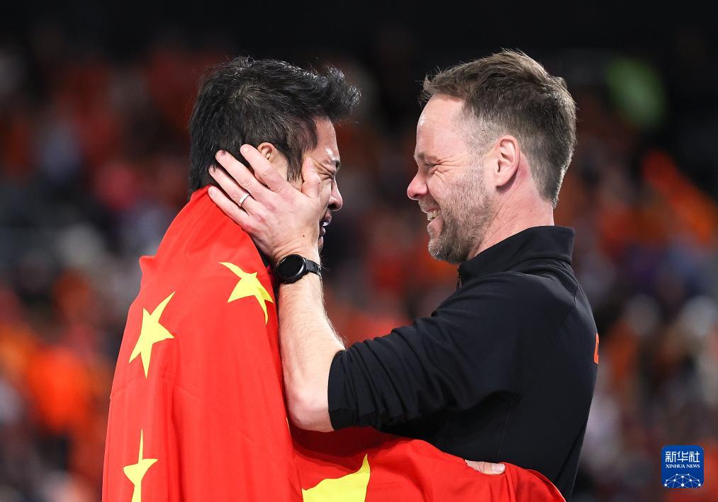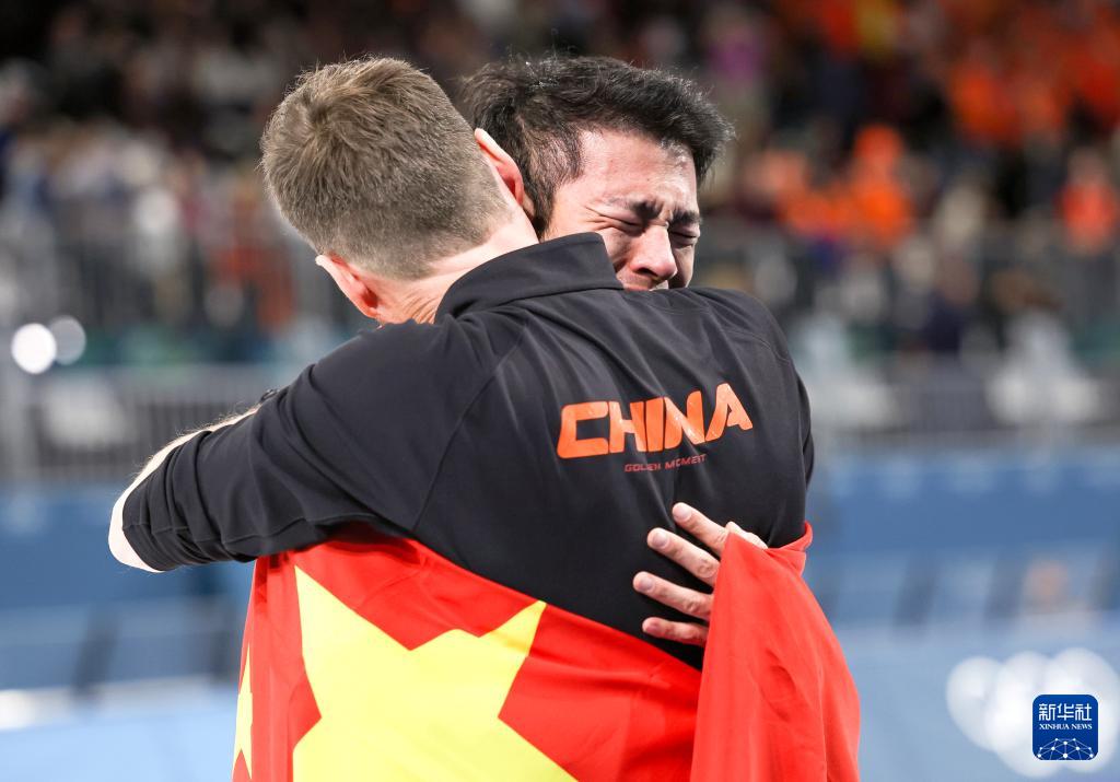 2月19日,宁忠岩(左)在赛后与教练庆祝。