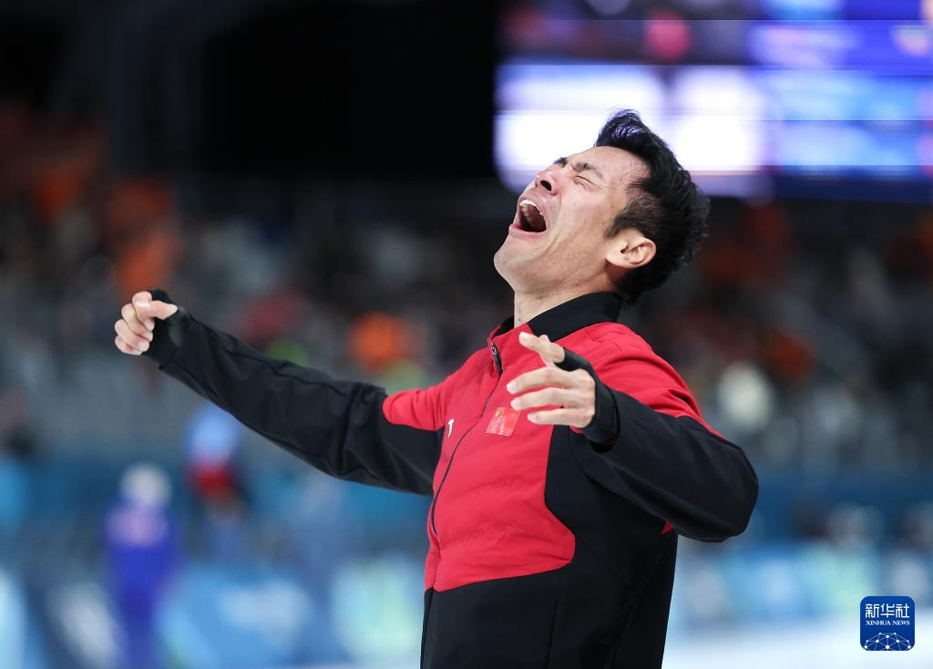 2月19日,宁忠岩在比赛后庆祝。